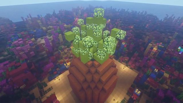 菠萝头和菠萝叶其实是一种叫法。菠萝叶是有一部分高出水面的高出水面3到5个左右即可。这样就比较符合动画片中的菠萝屋的样子。菠萝叶的建造其实也非常的简单,用到绿色的羊毛会把它建造成菠萝叶子的形状。这完全靠你的想象力也不用按照图片。
