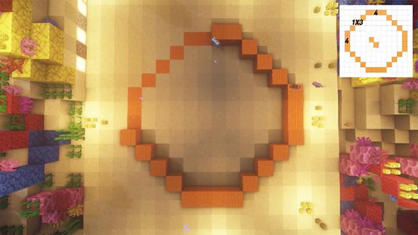 建造建筑之前免不了要搭建基础框架,这是任何建筑的基础。我们图片的右上角有一个建筑示意图。其实也非常简单,首先我们把上下左右都建造四个对称。中间的距离为九格左右,然后把剩余的部分围起来。这样菠萝屋的基础框架结构已经出现了。
