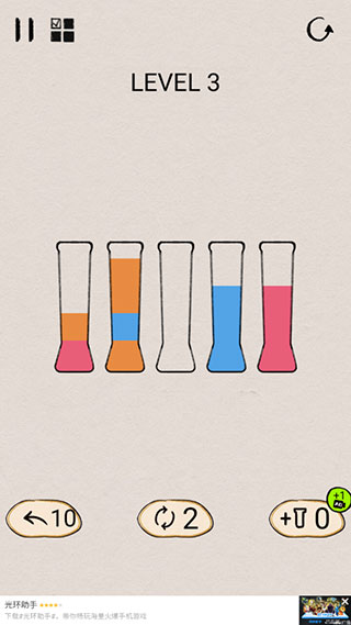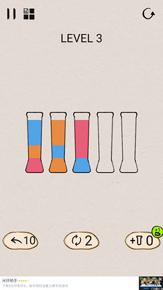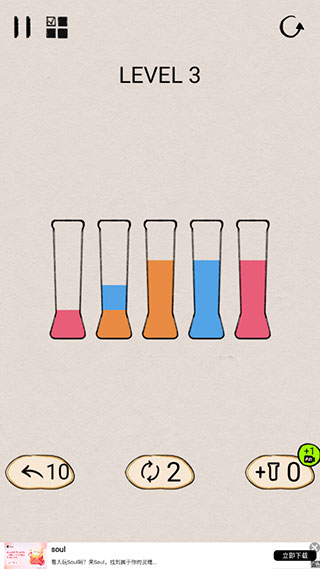 2、进入正题,游戏中玩家需要将瓶中的颜色安装分类去分好