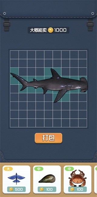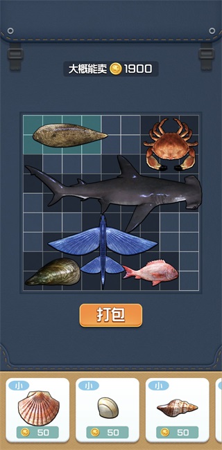 在《赶海王》中,会有一些体型属于大号甚至特大号的海货,一条鱼几乎就能占据小半个背包。我们在打包时需要优先摆放这些巨大的海货,一是更容易调整之后较小的海货的位置,二是体积越大的海货价格也就越高~