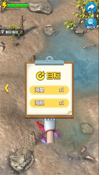 我们每次出发去赶海时都会有个任务目标,只要把目标里的海货带回去就算完成了关卡!
