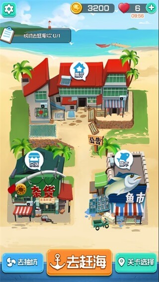 赶海带回来的鱼获怎么办?可以拿去鱼市出售!获得的金币还可以解锁更多的赶海地区~