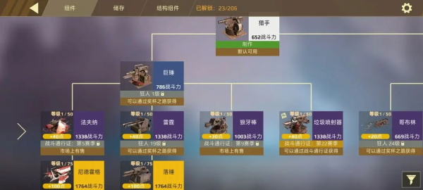 如上图所示,市场机器人会以22金币的价格来收购玩家的中型座舱“猎手”,或以28金币的价格来向玩家出售中型座舱“猎手”。