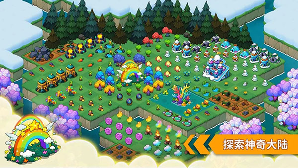 拖动相同物品合成,一秒即可进化;合成豆豆获得伙伴之力,可开垦更多土地;合成高产遗迹享受在线报恩,点击就有一波奖励尽情收割!