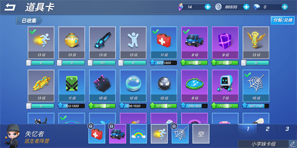 直接点击下部的道具卡就可以进入道具卡的整理界面,这样小伙伴在和好友开黑的时候就不用单独退出队列来调整自己的卡组啦。