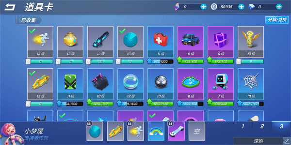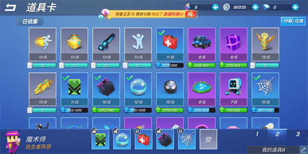 主界面“开始游戏”按钮庞有一个“道具卡”按钮,点击会进入道具卡的整理界面。