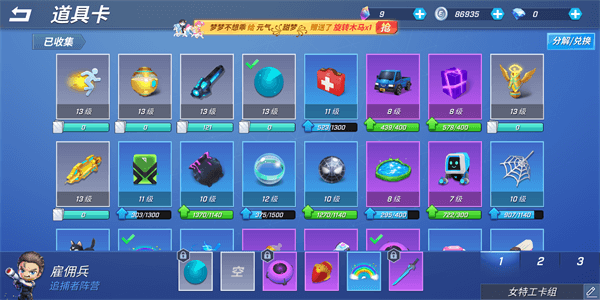 值得注意的是,闲置卡槽可以加快所携带道具的轮换速度,会避免玩家想使用一张道具卡时却没有刷新出来的窘境。