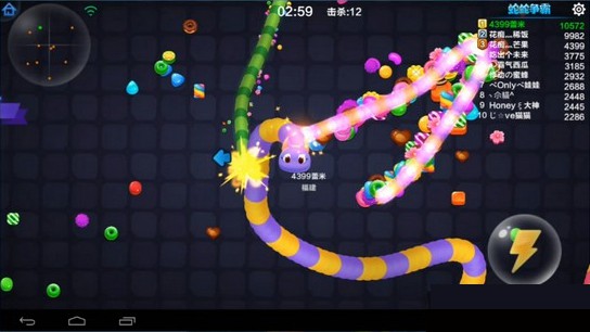 如果你对自己的长度有足够的自信,就可以对一些比较小的蛇蛇直接进行围杀,加速,并朝着自己尾巴方向移动,在里面的蛇蛇发现之前迅速合拢,就完成最基本的包围了。但是围成圈圈并不代表胜利哦,首次绕的圈圈势必空间比较大,若里面的蛇蛇仍不死心,会继续陪你原地转下去。接下来需要慢慢缩小你的圆圈,转得太慢可能绕圈的半径就会变大了,并且注意你的头部不要触碰到里面的蛇蛇。接下来就看谁先失误啦。