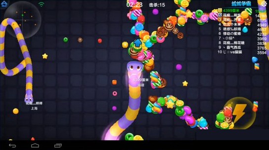 1、发育期:在游戏的前一分钟蛇蛇们都很短,击杀获得的分数很少而加速还要浪费分数,本身长度也不够无法对敌人形成有效的威胁。尝试击杀是可以的,但是更重要的是发育,吃闪亮的冰激淋块能让你迅速长大!