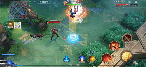 这里仗着装备经济优势拉扯一波美国队长,真不愧是美国队长,伤害还是很高的,吓我一跳,还以为没有还手的机会了,结果接完他的大招后二技能接一技能拉开距离继续输出,将美国队长拉扯,拿下人头。