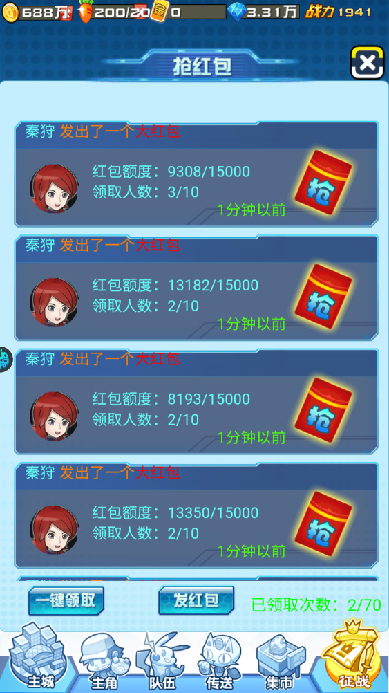 2、游戏界面内可以随机抢红包;