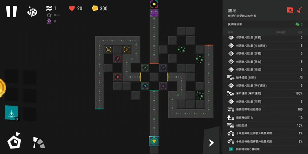 超过300种的科技树分支,玩家能在升级中解锁额外的能力并提高塔的统计数据,几乎每一个分支都能无限升级,每一个决定都影响后续的战局。