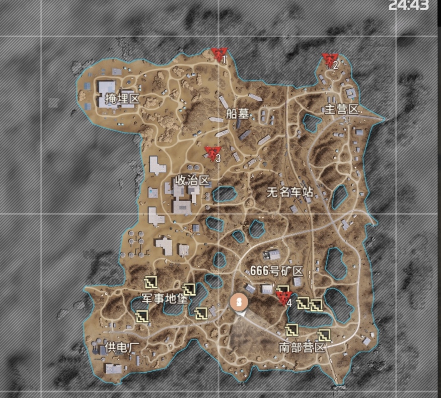地图整体分为:掩埋区、船墓、主营区、收治区、无名车站、666号矿区、军事地堡、供电厂、南部军营这9个区域。