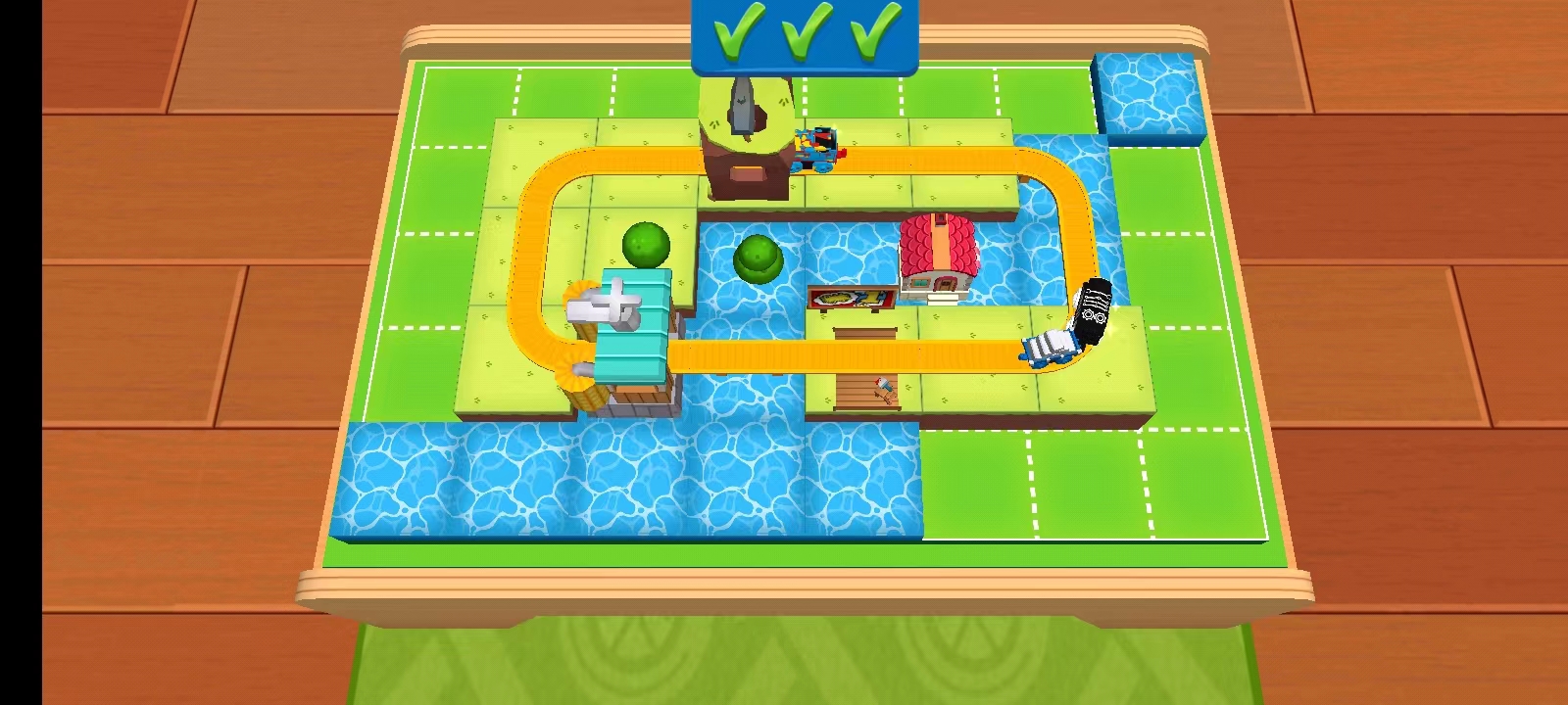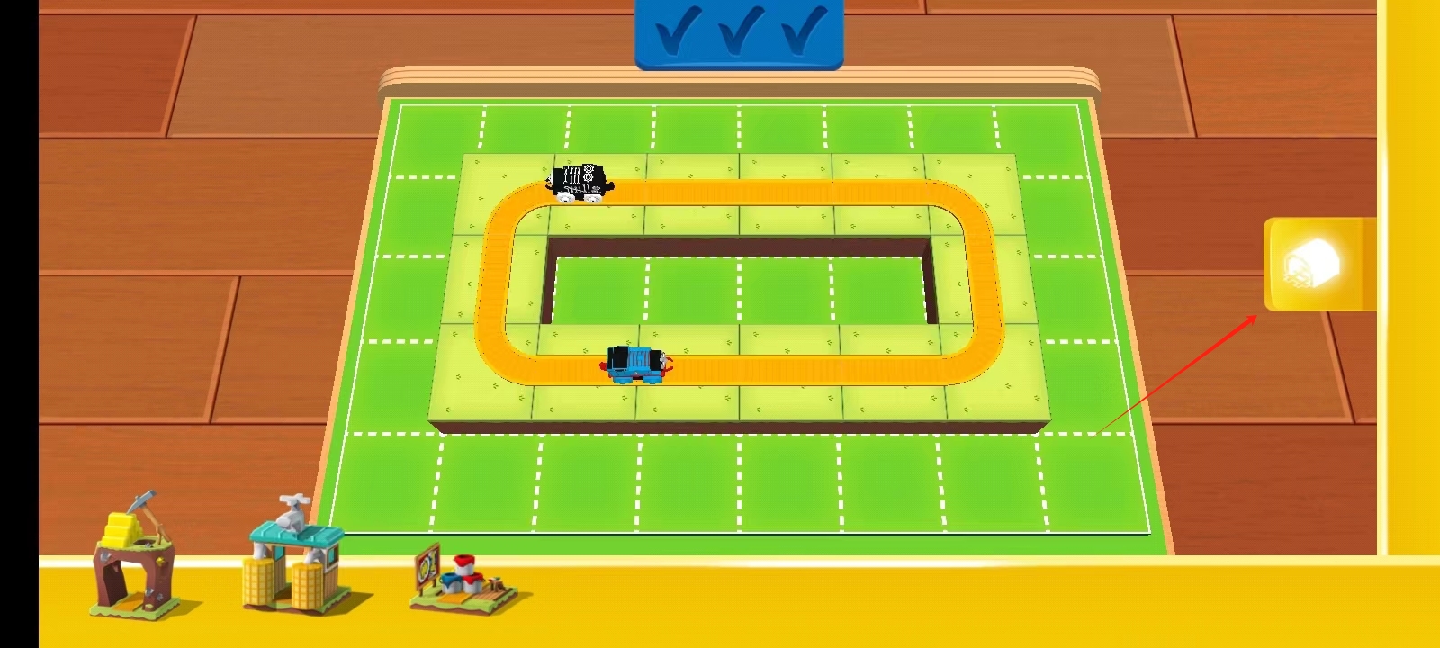3、当轨道全部弄好以后,一直点击下方的这个图标,就可以获得一辆新的火车;