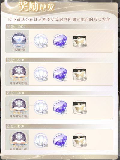 达到不同的段位,在每周赛季结算时还可以获得丰厚的段位奖励,搭配赛每周一0点进行结算,根据小主当前的段位排名发放对应的奖励