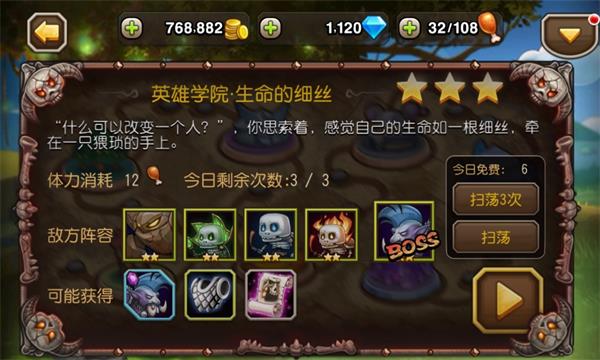 通关攻略:同样是进行收集装备、进阶英雄等操作,善于利用技能打断。由于电魂是主输出,在电魂放技能的时候用船打断。