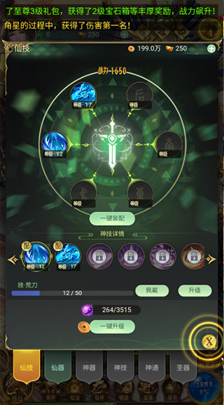 1、丰富修仙技能,玩家可以自由搭配组合,体验多样化战斗