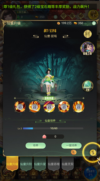 5、另外封天战神手游还有独特的仙童养成玩法,每个仙童都有自己的专属技能,是玩家不可缺少的强大伙伴;