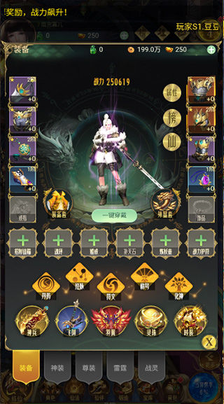 4、人物界面都各种养成玩法的入口,比如装备、经脉、丹药、神兵、符文等等,修仙世界中有的这里都有;