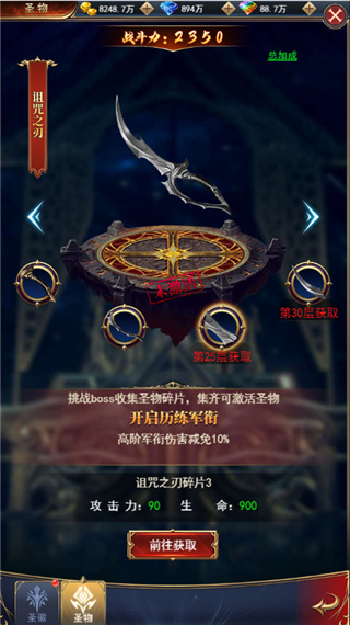 注意只有在新地图挂机才能拥有更高的效益,所有不要放任角色在老地图里低效刷怪哦。因此要留意点击左下角的“任务”提示,查看当前任务,如果当前任务是收集圣徽或圣物道具,记得去点击“前往获取”进入秘境关卡提示页,进行“挑战”,这样角色才会寻路去挑战秘境BOSS来获得任务道具,以尽快完成主线任务目标,从而推进解锁新地图去高效挂机。