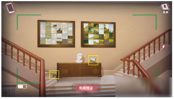 悬崖返回,进行别墅搜查,杂货间,油画2块,数字2块,彩色齿轮3块