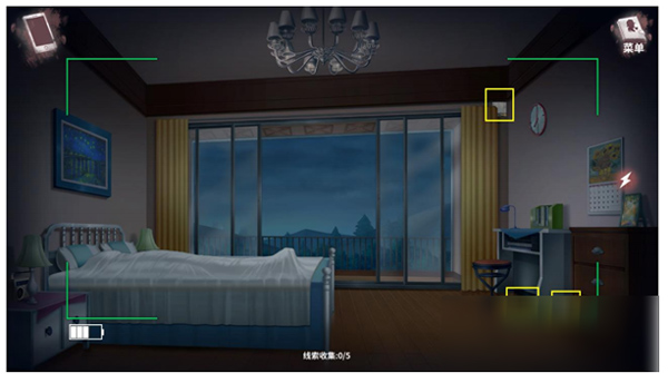 5、搜证:墙壁,灯,时钟;