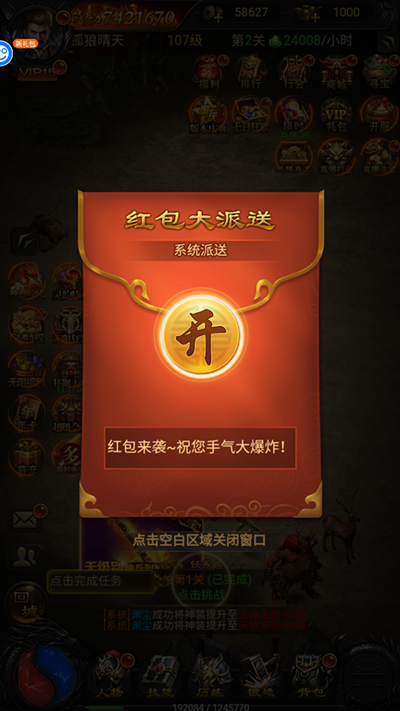 5、在冒险的过程中击败怪物会随机爆出红包;