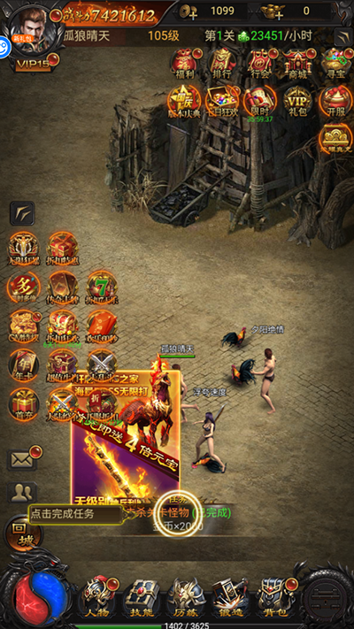 游戏里有好多惊喜活动,比如限时红包雨、全民瓜分千亿红包,甚至还能用抢到的红包直接充值。充值也有折扣,最低0.1折起,简直是散人的天堂!还有巅峰大乱斗玩法,击杀敌人攒积分就能赢取丰厚奖励。如果你喜欢传奇游戏但又不想花太多钱,这个版本绝对不容错过!
