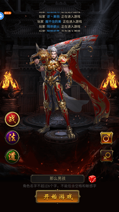 2、进入到游戏内我们需要在经典三职业中选择自己想玩的职业;