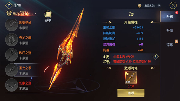 圣物方面同样以“生存优先”,建议首选培养【圣光之矛】,可以提供技能防御、混沌抗性和大量闪避。