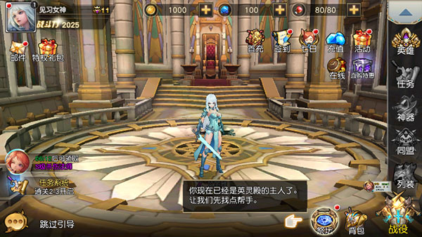 1、开始游戏后,邮件会送十连抽,在主城点击招募可以召唤女神。