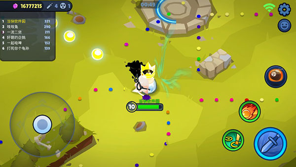 4、天梯模式非常实用的技巧,我们在地图上初始会有很多移动的小泥团,这个彩色小泥团会绕圈走,顺时针逆时针都有,这个时候我们想要快速升级就是要逆着这些小泥团的方向,这样可以让你快速吃到最多的泥团。