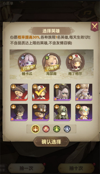 2、心愿召唤:活动期间,可通过界面切换心愿英雄,进行抽奖。