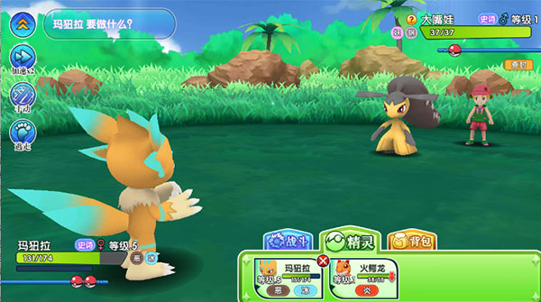 4、精灵面板可以替换精灵,背包里可以使用精灵球抓捕野外的精灵。