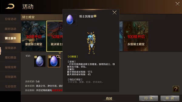 除此之外,我们还能通过其他活动获得少量原生幻兽蛋,总得来说,原生幻兽属性不低又切合职业属性,是每一位魔域战士的好伙伴。