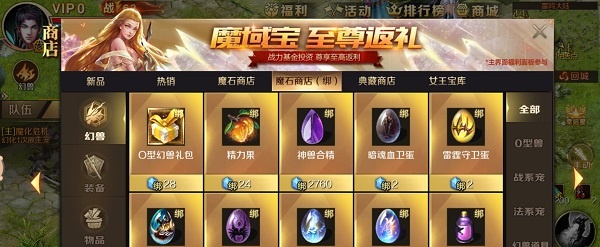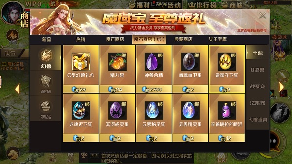 原生宠成为最易培养的幻兽最大的原因还在于商城能大量供应,2绑定魔石的价格实在是不贵,在我们升级的过程中就会获得大量魔石,完成成就更是一次能获得上百甚至几百魔石。不过这里还是建议先存下魔石购买神兽合精(2760绑定魔石,可以让我们出战2个幻兽),买下之后再来考虑是否买原生幻兽蛋。