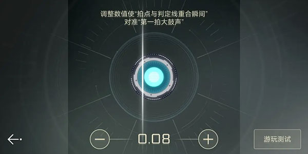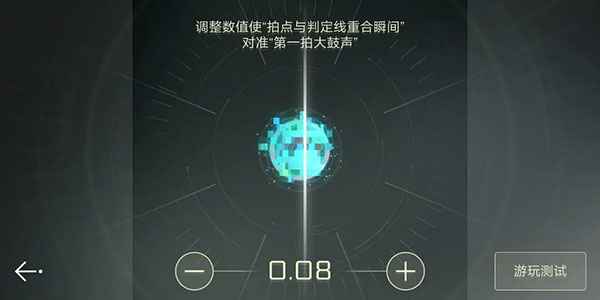 点进开始校准——官方说明是:“调整数值使拍点与判定线重合的瞬间对准第一拍大鼓声” 。