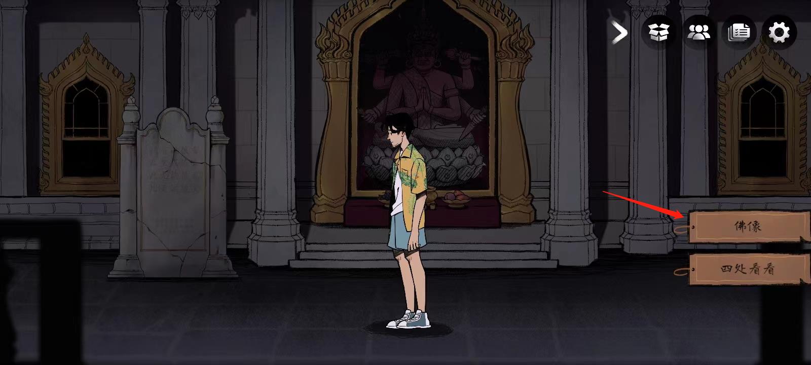 6、交谈完以后,局长会告诉你要记得上香,上完香才可以离开寺庙,因此玩家需要走到佛像面前,回答出前面供奉的是什么佛像;