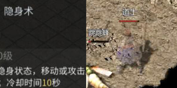 隐身术:道士的特殊技能,施展幻化之力,将自己或队友的身形气息完全隐匿起来。瞒天过海,令怪物和敌人失去目标,在某些场合下使用会有奇效。
