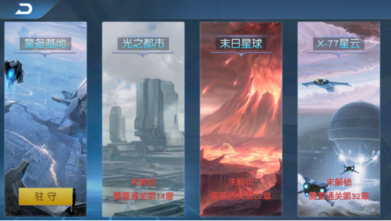 领地一共分有四个板块,分别是:警备基地、光之都市、末日星球和X-77星云。