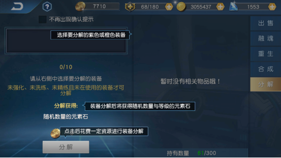 第二个功能就是“分解”,我们在英雄格斗结束后,可能会获得一些高级装备。