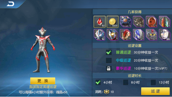 巡逻也是分等级的,分别是普通巡逻、中级巡逻和豪华巡逻这三个,所对应的时间也是依次递减的,还有巡逻的时长也是根据大伙自己来定的哦!