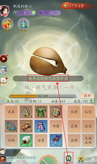 2、游戏内还给玩家们提供了自动敲击系统,在玩家达到炼气后期就可以开启。