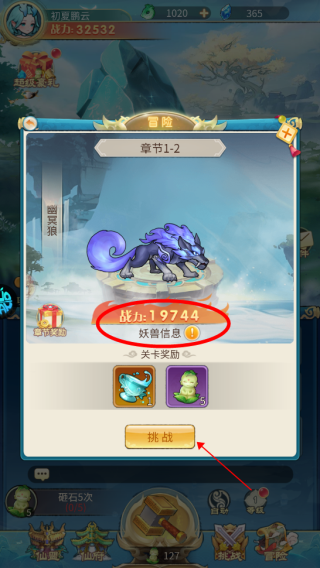 6、可查看妖兽战力,点击挑战进入