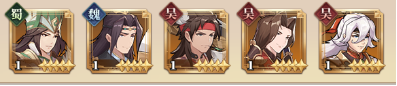 诸葛亮、曹植、陆逊、甘宁、周瑜(关羽、孙尚香、孙策)