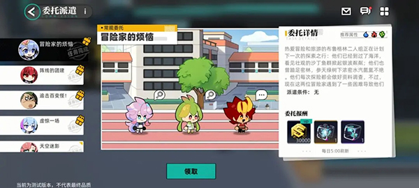 委托,委托有五个内容,会随着委托次数,里面奖励变多变好。(需要全部主线通关解锁五个内容)