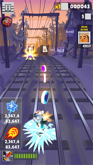 4、双击使用滑板也可以增加双倍得分,并且滑板还有特色效果,可以帮助你更好跑酷。