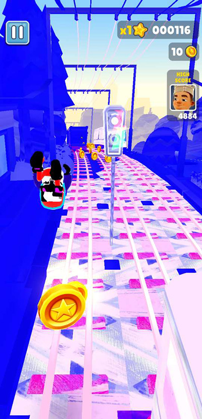 有地铁也会有山洞,中间有一根柱子,左右两边无规律会有火车奔过来,这个时候就要考验玩家的应变能力;