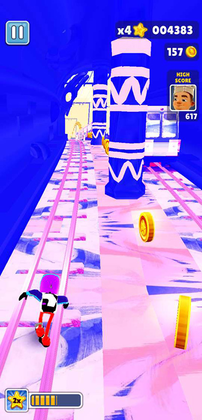 获得双倍得分(2X Multiplier)后,在道具有效时间内,每收集一个金币即可获得两倍于原先倍数的得分。