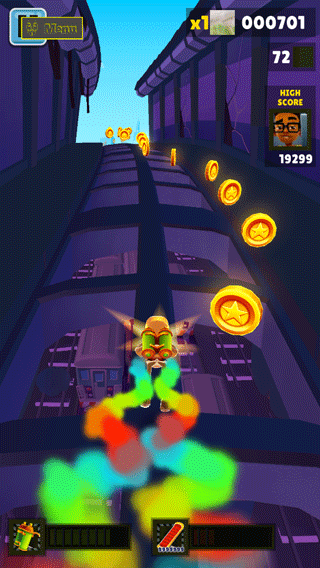 3、并且还有多种道具会陆续出现,包括磁铁、飞行背包、双倍得分、运动鞋等;